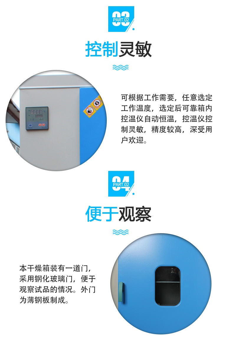 各種規(guī)格系列化,可供醫(yī)療衛(wèi)生單位及其它部門化驗(yàn)室做干燥、烘焙、熱處理及其它加熱廣泛應(yīng)用。